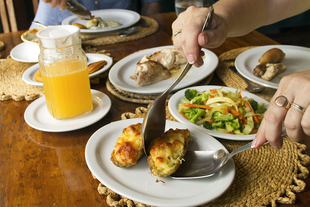 Dinner menus are "table d’hôte" and are crafted to reflect the unique, multi-ethnic reality of Trinidad and Tobago. Delicious light lunches are also served. Bread is whole wheat and homemade and water is from a spring located on the property. Guests often comment on its "golden" taste.