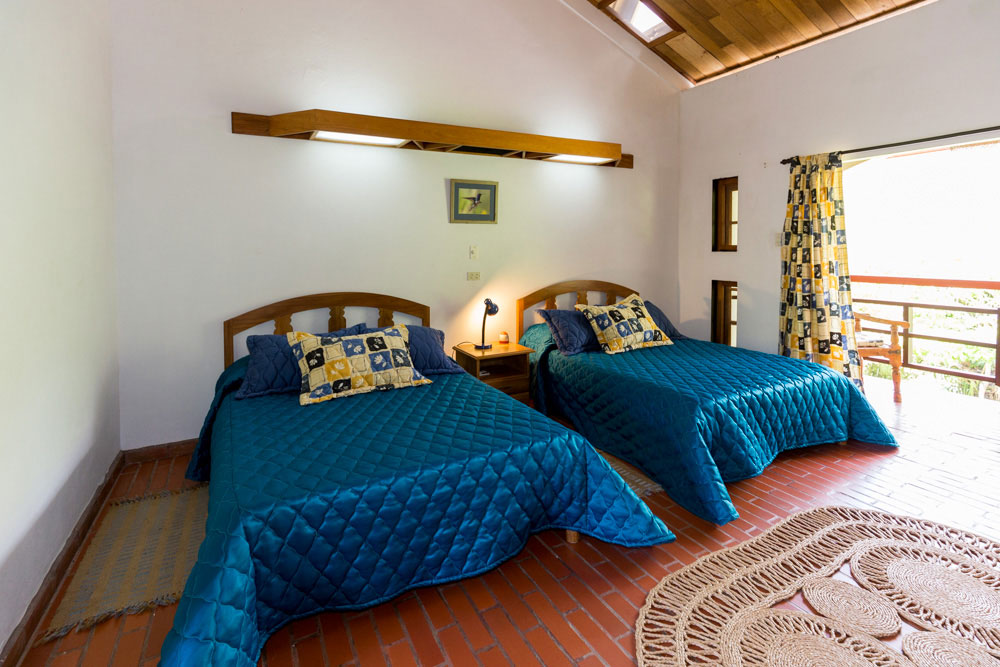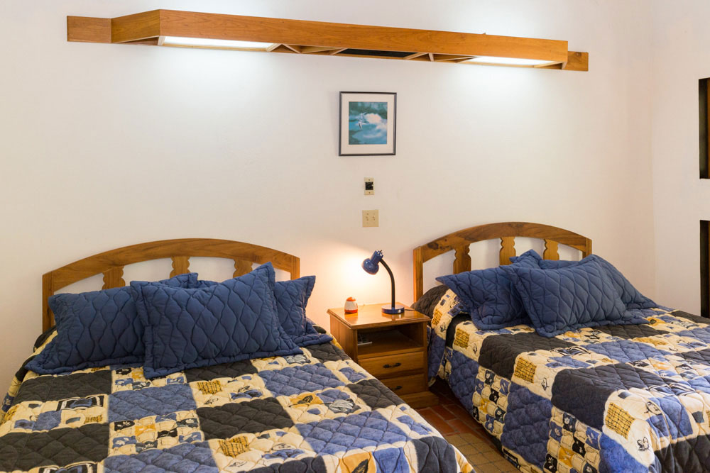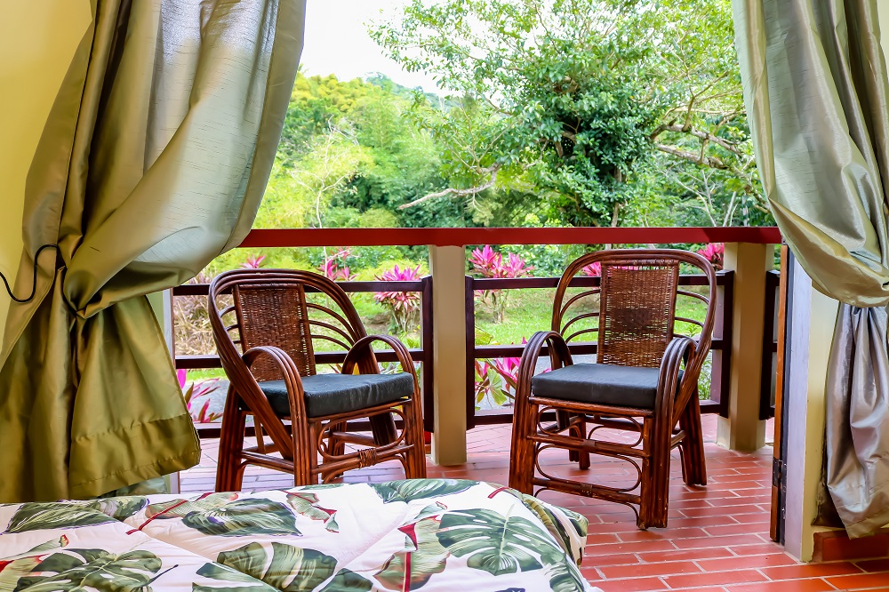 Each Deluxe room features an ensuite bathroom with a grab bar and solar-heated shower, two double beds, and convenient tea and coffee-making facilities. Accessibility is a priority, with wheelchair-friendly ground floor rooms and ramps leading into the hotel and up to the pool deck. Enjoy a private balcony in every room, providing stunning views of the rainforest and our main bird-feeding area. Immerse yourself in the perfect blend of adventure and relaxation at our welcoming retreat.